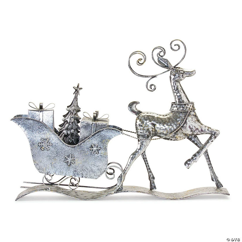 Ring in the holiday season with this beautiful Deer with Sleigh Figurine. The shiny silver finish paired with the quality polyresin design makes this piece a great addition to any style of Christmas dΓ©cor. Display the pieces together to make a statement, or display along with other decor to spread the holiday cheer.Β Measures 26.5″L X 19.75″H. Material: MetalΒ Special Shipping Information:Β This item ships separately from other items in your order.Β This item cannot ship to a P.O. Box.Β This item may be subject to additional processing days.Β Β Item is not eligible for expedited shipping.Β Β Β Β You may initiate a return for unused items within 30 days, if the items are in original packaging with all original materials included with the shipment.