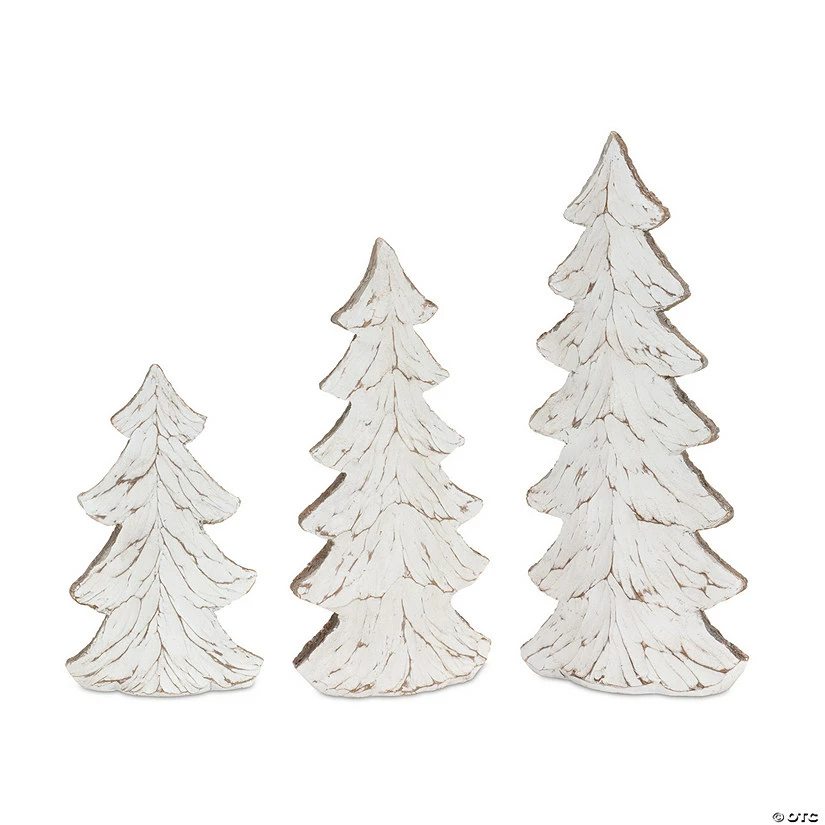 Enhance your holiday home decor with this beautiful set of Carved Holiday Tree Decor. Featuring three assorted sizes, white-washed finish paired with the carved design makes this piece the perfect addition to your Christmas decor. The quality polyresin composition is sure to last for seasons to come. Display the pieces in a table centerpiece or mantle arrangement to add interest. Measures 2.5 x 5 x 8.5 in.; 3 x 5.5 x 11.75 in.; 3.5 x 6.5 x 14.5 in..Β Β Special Shipping Information:Β This item ships separately from other items in your order.Β This item cannot ship to a P.O. Box.Β This item may be subject to additional processing days.Β Β Item is not eligible for expedited shipping.Β Β Β Β You may initiate a return for unused items within 30 days, if the items are in original packaging with all original materials included with the shipment.